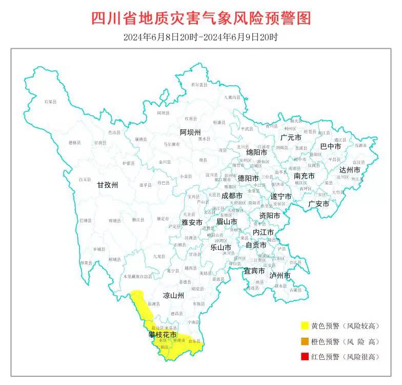 预警区域:攀枝花市东区、西区、情切区、盐边县、米易县;