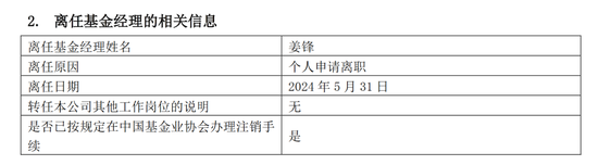 6月4日,建信基金发布公告称,基金司理姜锋个东说念主苦求下野,卸任了我方在管的统共基金居品,于2024 年5月31日从公司下野,已按律例在中国基金业协会办理刊动手续。
