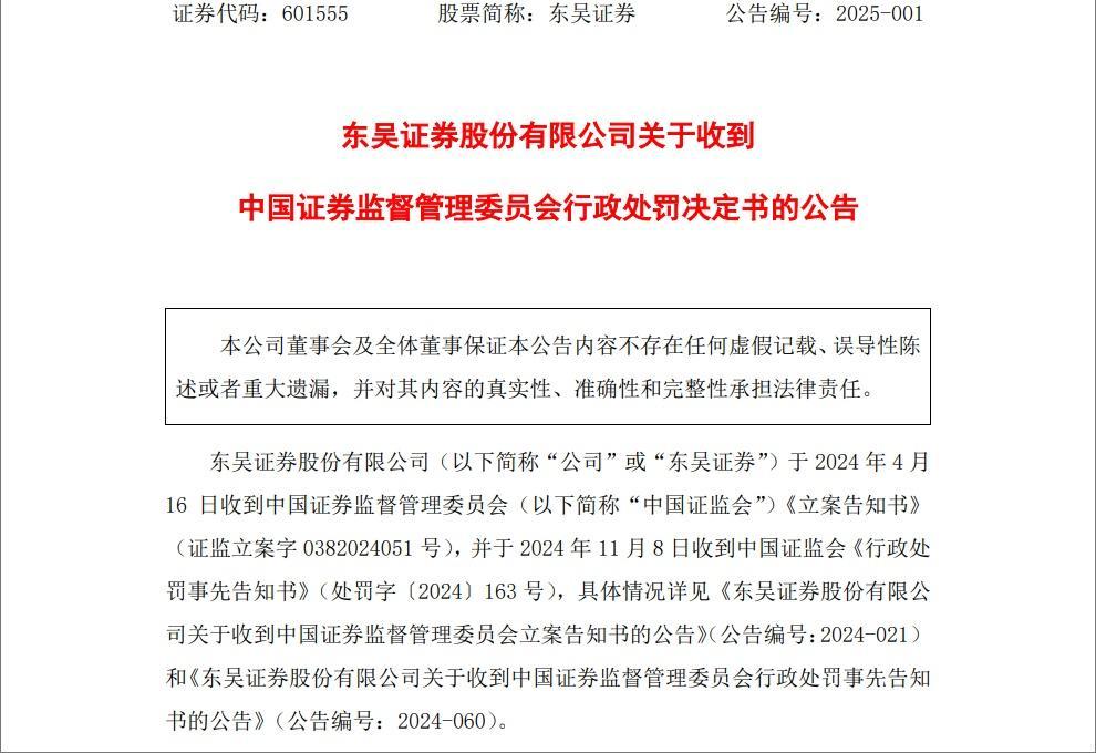 被立案八个多月后,对东吴证券的行政处罚后果落地!