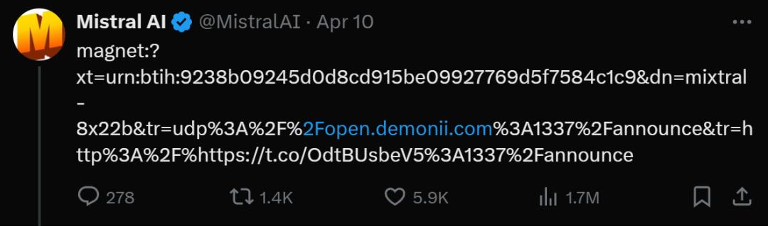 2个多月后,一个磁力皆集丢出Mistral 8*7B。