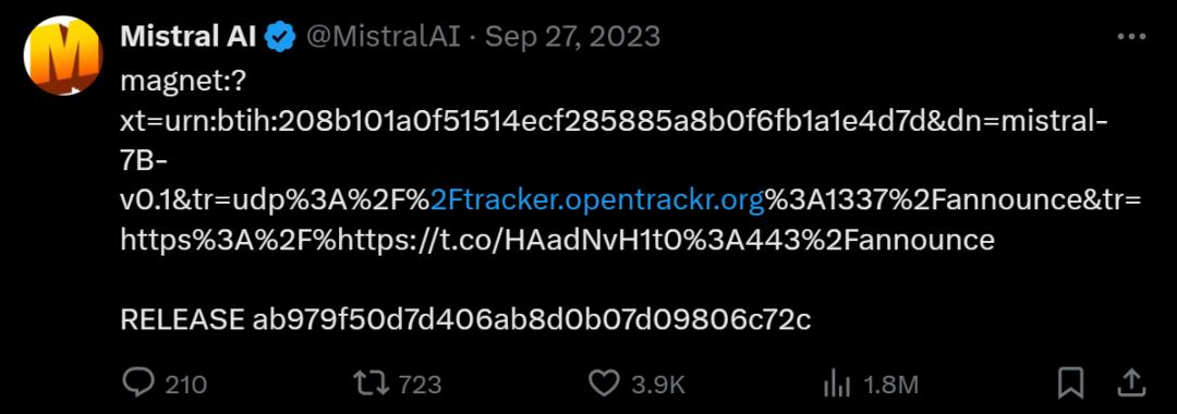 2023秋天发布Mistral-7B,一个磁力皆集,莫得花哨的宣传,开源社区为之放浪。