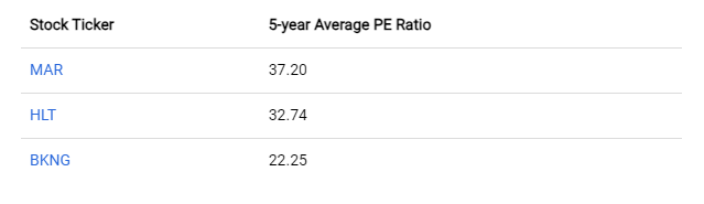 下表列出了Airbnb竞争敌手的5年平均市盈率。