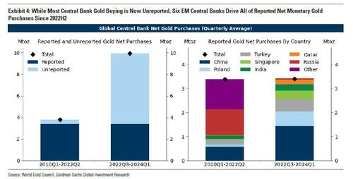 高盛暗示,近两年来,环球央行已推崇的购买量一直保捏牢固,而未推崇的购买量实在是鼓吹环球央行黄金购买量加多了三倍的主力。