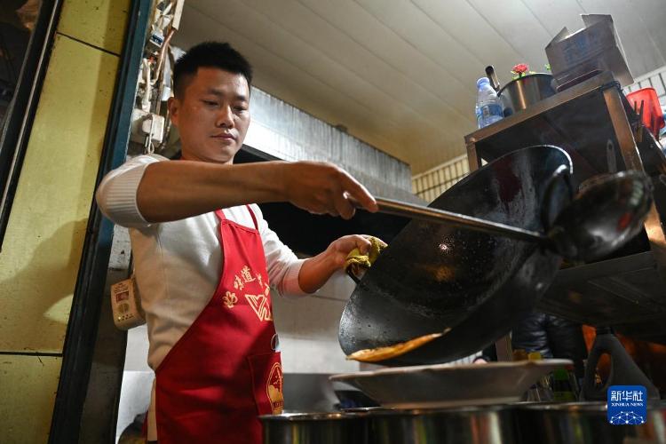 1月12日,返乡前夜,川籍务工东谈主员李小铁在福建福州的一家餐馆厨房内作念菜。