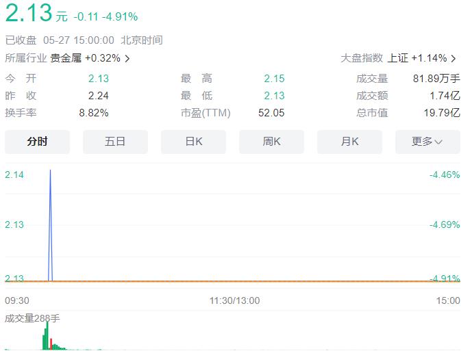 5月27日9点26分体育游戏app平台,中润资源的股票(称呼:*ST中润;股票代码:000506)开盘便跌停。搁置本日收盘,股价报2.13元,成交量81.89万元,成交额1.74亿,换手率8.82%。